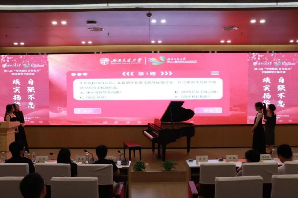 本次大赛评委由人文学院音乐系教师涂覃平、刘柳、辛星担任。赛制分为三个环节,第一环节为四手联弹,选手抽签两两组合演奏;第二环节为知识竞答,每位选手选择钢琴史、音乐史、作曲家与作品等相关题目进行回答;根据前两个环节评分决出前四名晋级第三环节,选手自由演奏曲目决出最终排名。