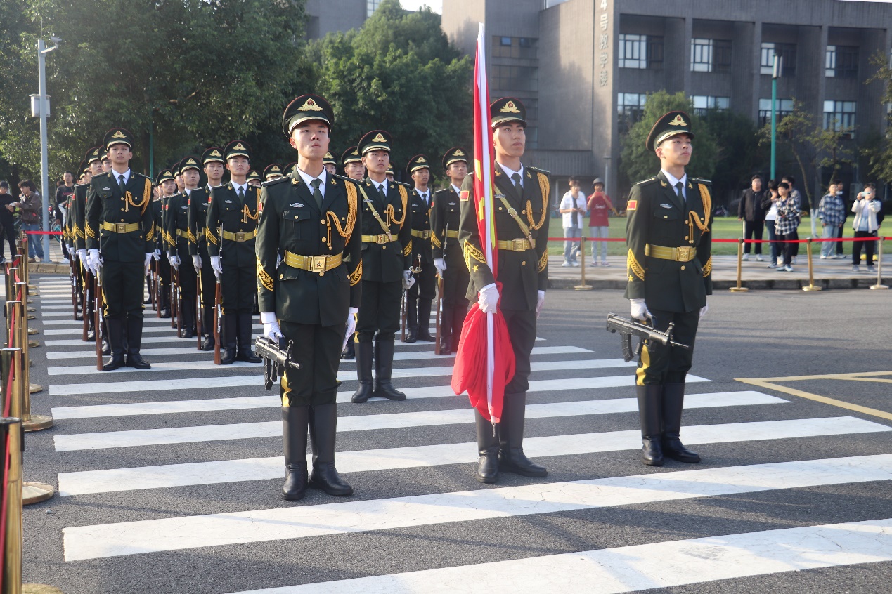 上午8时整,国旗护卫队以昂首挺拔的军姿,迈着坚定的步伐,整齐划一地护送鲜艳的五星红旗入场。在庄严的国歌声中,鲜艳的五星红旗冉冉升起,全体师生肃穆而立,向国旗行注目礼,表达对祖国的无限热爱与崇高敬意。
