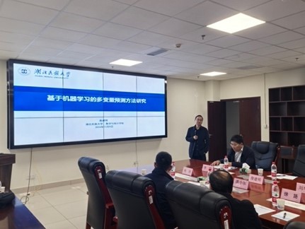 会议的第二天,讲座内容聚焦于机器学习在多变量预测中的应用,探讨了如何应对高维、非线性数据所带来的挑战。刘华文教授(山东大学)在《有界格上三角模及其扩张算子的研究进展》讲座中,详细介绍了三角模在多值逻辑与智能控制中的应用,并提出了相关算子扩展的研究进展。这一讲座展现了三角模在推理与决策中的理论深度及其广泛应用潜力。詹建明教授(湖北民族大学)则在《基于机器学习的多变量预测方法研究》中,介绍了基于机器学习的多变量预测方法,特别是三支决策、传递熵及可能性理论的应用。詹教授阐述了大数据驱动的预测模型如何应对复杂系统中的非线性问题,并展望了这一方法在金融、气象及交通预测中的广阔前景。覃锋教授(江西师范大学)在《基于连续基础算子一致模的研究进展》中,探讨了聚合函数在理论与应用中的重要性,提出了与一致模相关的多个研究问题,为模糊逻辑领域的进一步发展提供了重要理论依据。