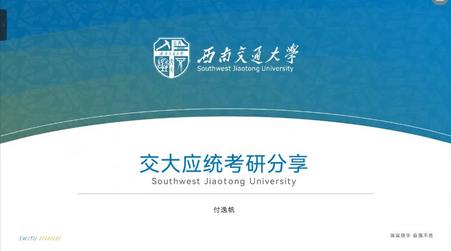 第二期为“数学、应用统计专业硕士考研专场”,2025届统计学专业本科生付逸帆、刘玉琢,数学与应用数学专业本科生赵红萍针对学硕与专硕方向的不同,围绕考研常识普及、择校策略制定、复习计划安排等关键环节展开专业指导。