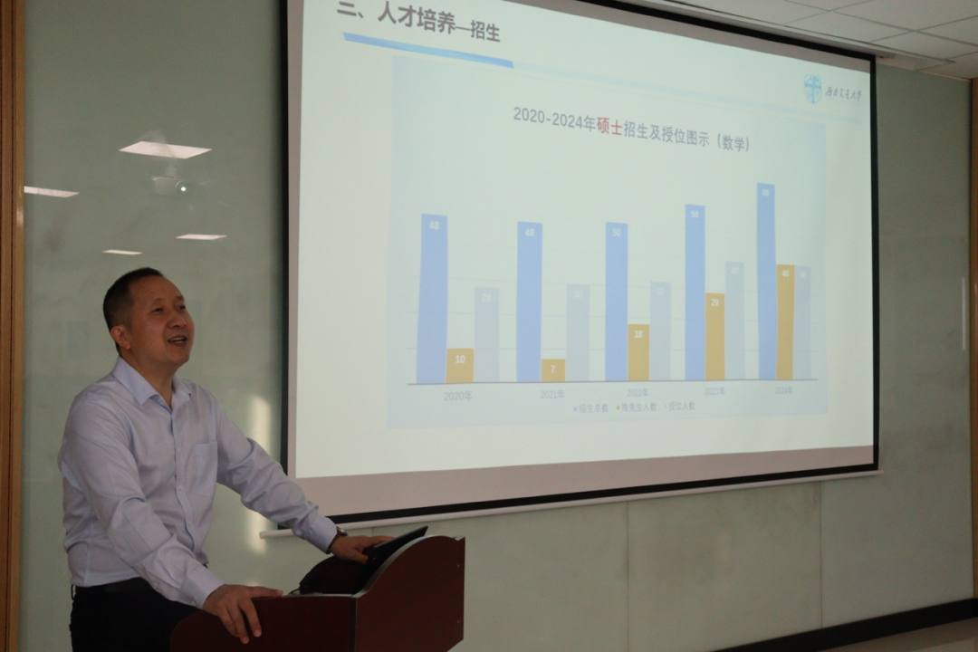 副院长丁川、成都理工大学数学科学学院副院长姬瑞红、西华大学理学院副院长王玉兰、重庆邮电大学数学与统计学院吴国成、重庆交通大学数学与统计学院程用平分别围绕提高人才培养质量、实施有组织科研、加强师资队伍建设、凝练凸显学科特色等方面发言交流。
