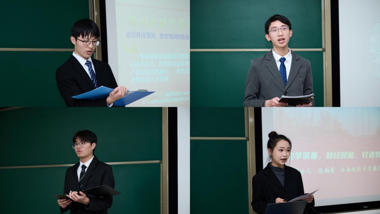 学生会主席团成员分别围绕“数学铸魂启智,文脉薪火相传:数学文化节系列活动引领同学全方位成长”、“‘学霸大讲堂’朋辈领航促成长”、“数韵流光 求证未来--关于数学学科赋能校园文化的思考与实践”、“数学筑基,财经赋能:打造特色校园文化新范式”分享了各自开展的特色亮点工作。