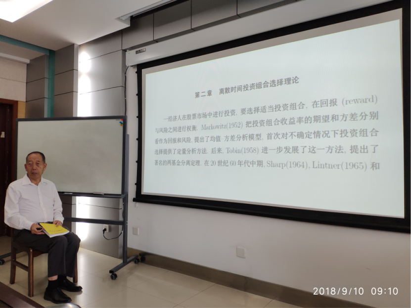 严加安院士首先给老师和同学们介绍了《金融数学引论》这本优秀的著作,从其第二章离散时间投资组合选择理论给大家展开了金融数学课程的具体讲解。