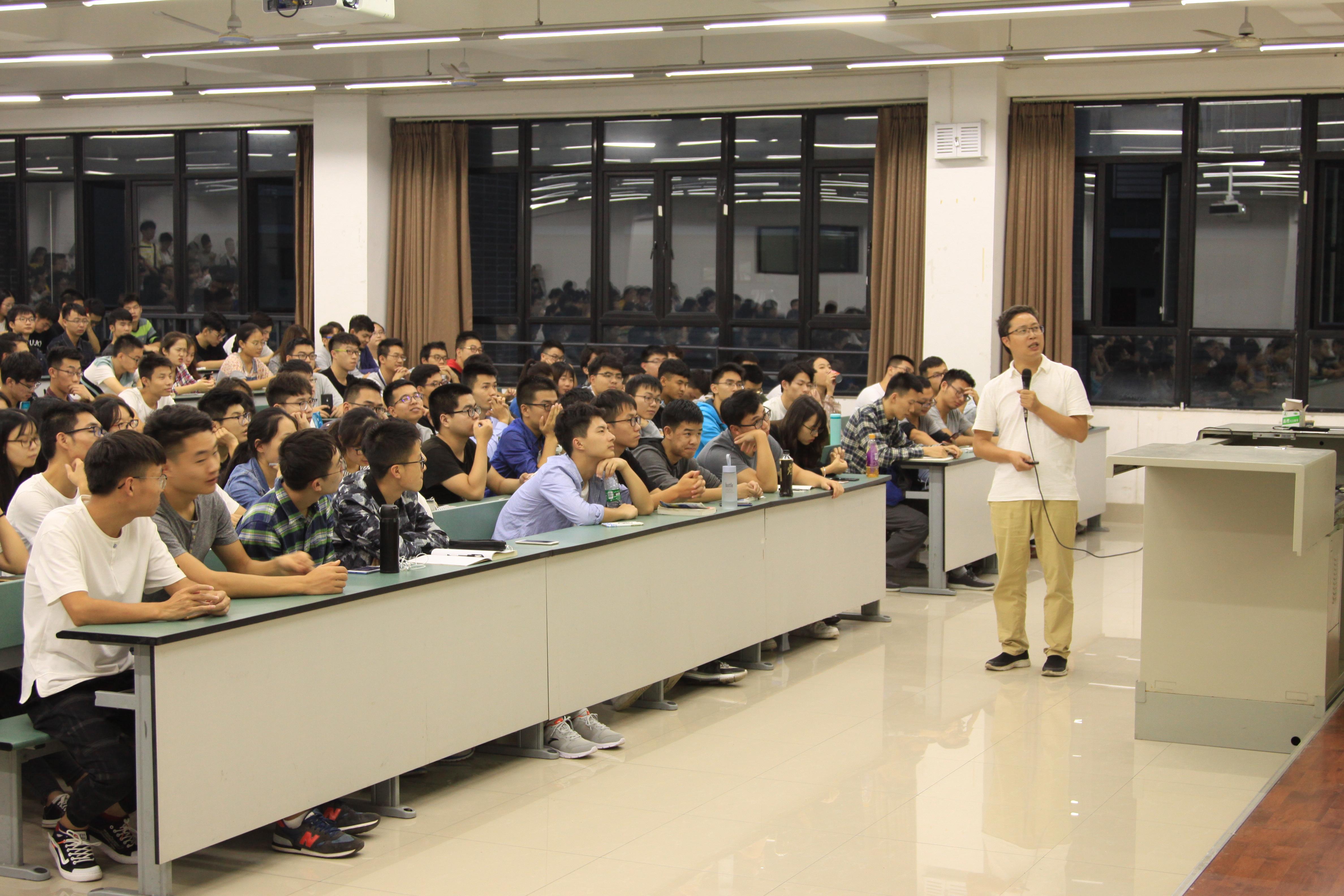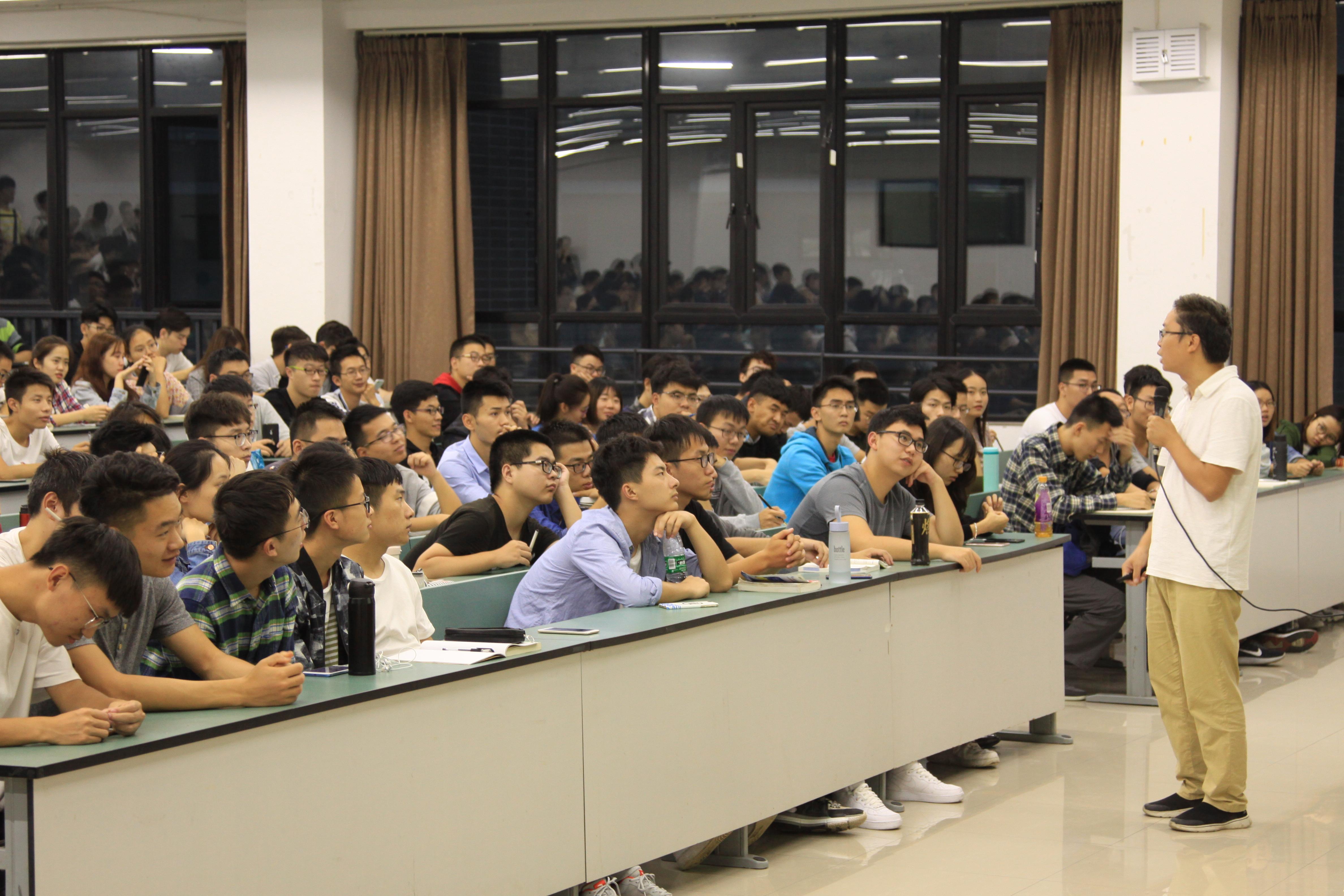 14日晚的讲座非常火爆,教室300余个座位早早被抢完,但同学们依旧源源不断地进入,甚至站立在教室之后听讲,可见同学们对本次讲座的热情。7点整,樊老师正式开始关于考研数学的讲解。樊老师首先简单介绍了考研的基本情况,从考研科目、考验热度和专业院校选择几个方面让大家了解了概况。随后,樊老师步入正题,先是为同学们推荐了考研数学需要准备的教材和辅导书,并解释了这些资料的处理方法,还为同学们列出了一个比较详尽的复习计划。