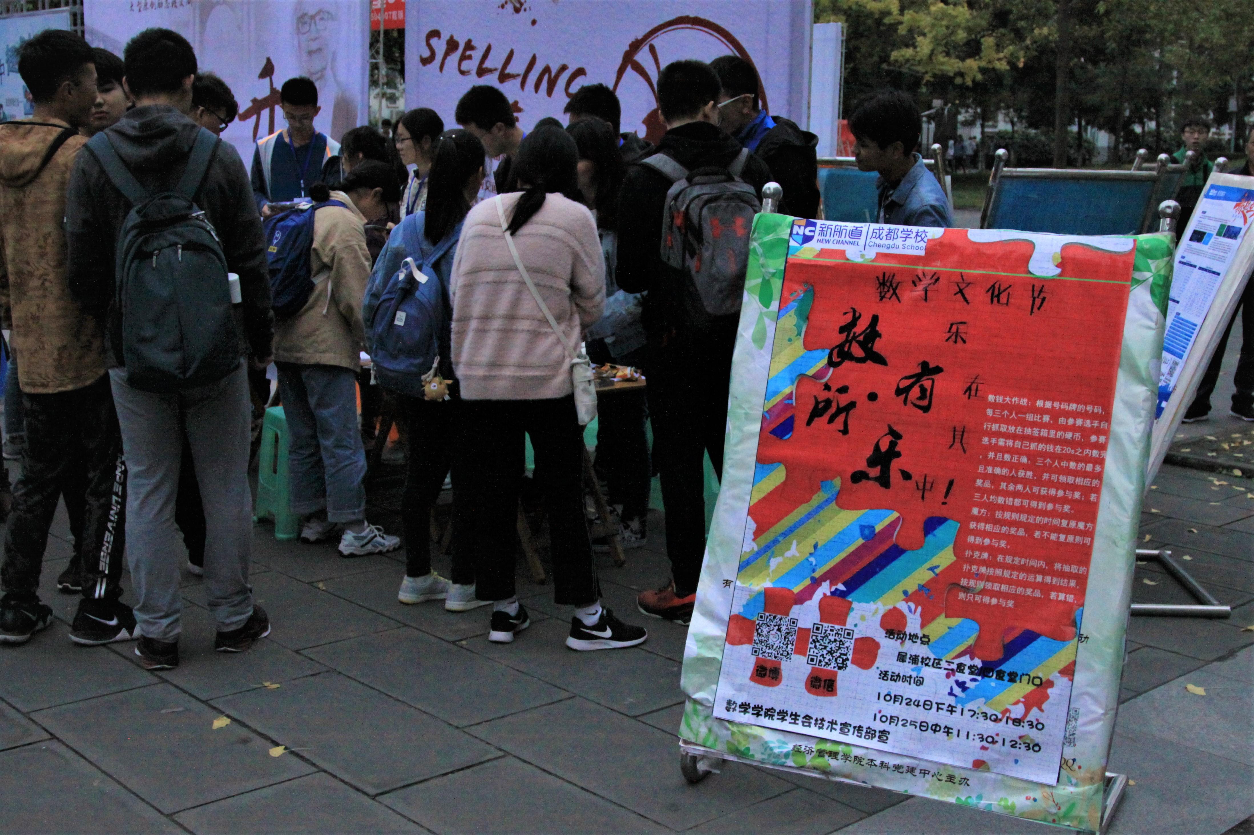 于10月24日下午5时30分在二食堂和四食堂门口展开了 “数学文化节”的宣传活动——“数有所乐”,本次活动由学院学生会负责举办。