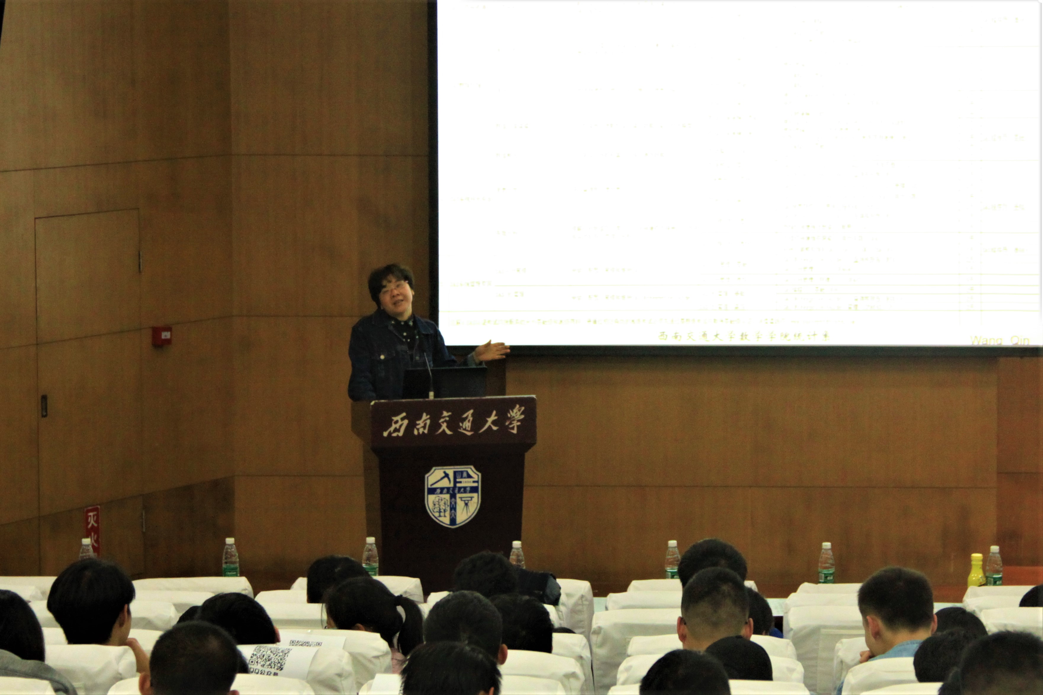 三分钟的短暂休息后,数学竞赛相关系列讲座开始。首先是王沁副教授为大家介绍了SAS竞赛。王沁教授一直从事概率统计应用,管理科学与工程,时间序列等方面的研究,曾获2016年“汇丰杯”SAS比赛优秀指导教师奖。王沁教授详细讲解了什么是SAS竞赛、SAS竞赛来源、SAS六大模块、中国现在的比赛情况以及参与比赛的好处,并表示十分欢迎各位同学参赛,希望同学们能够通过参赛学习知识,提升个人能力。