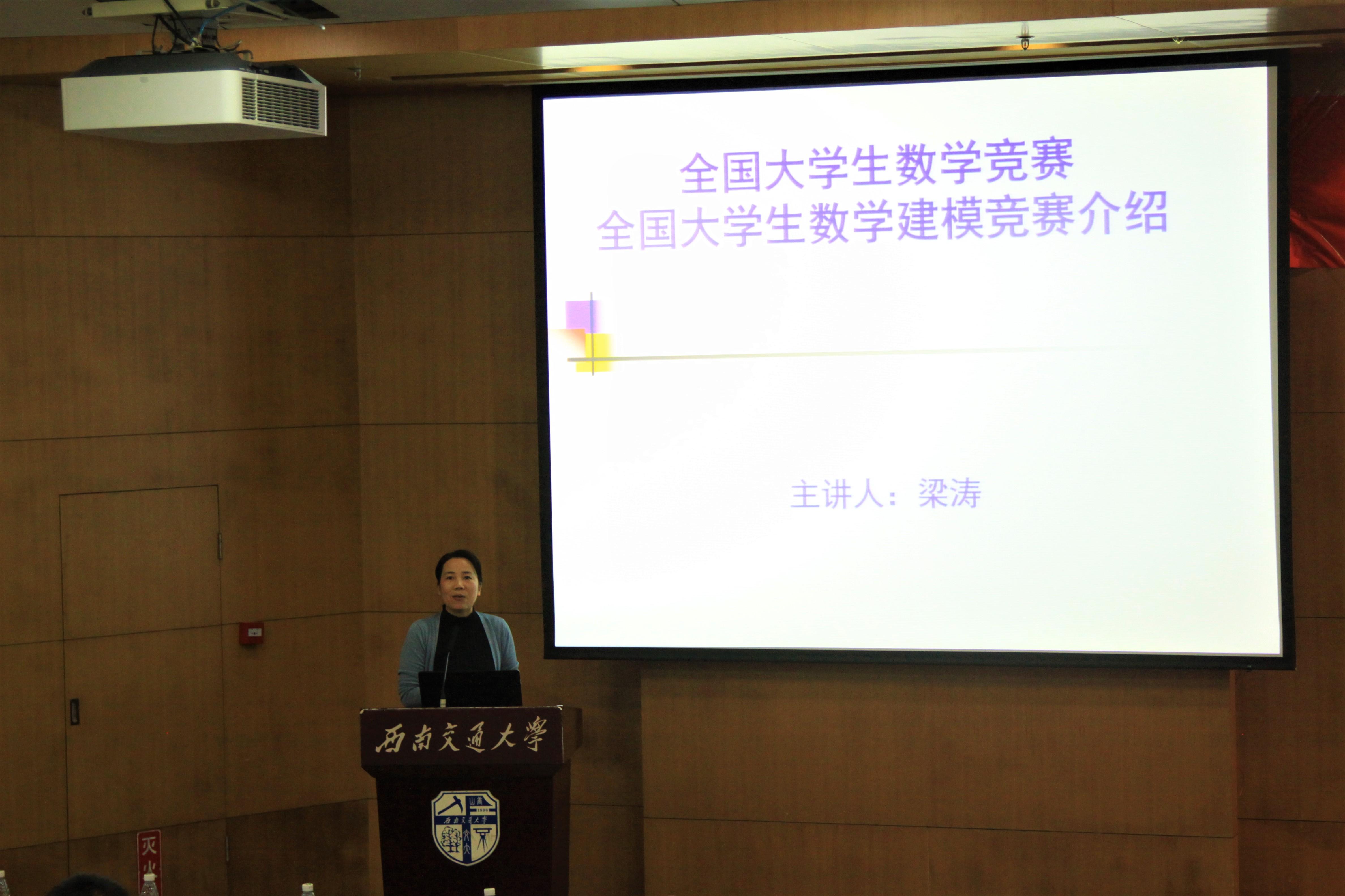 公共数学研究部主任、全国大学生数学建模竞赛国家优秀指导老师梁涛副教授为大家介绍和讲解全国大学生数学竞赛和数学建模竞赛。梁涛教授分别从竞赛起源、赛制、参赛要求、比赛内容等几个方面具体地介绍了竞赛,并多次展示历年赛题,进行讲解,让同学们对竞赛有了充分的认识。同时梁涛教授也大力提倡同学们参赛,以“一次参赛,终身受益”为结语结束了讲解。数学竞赛系列讲座到此结束。
