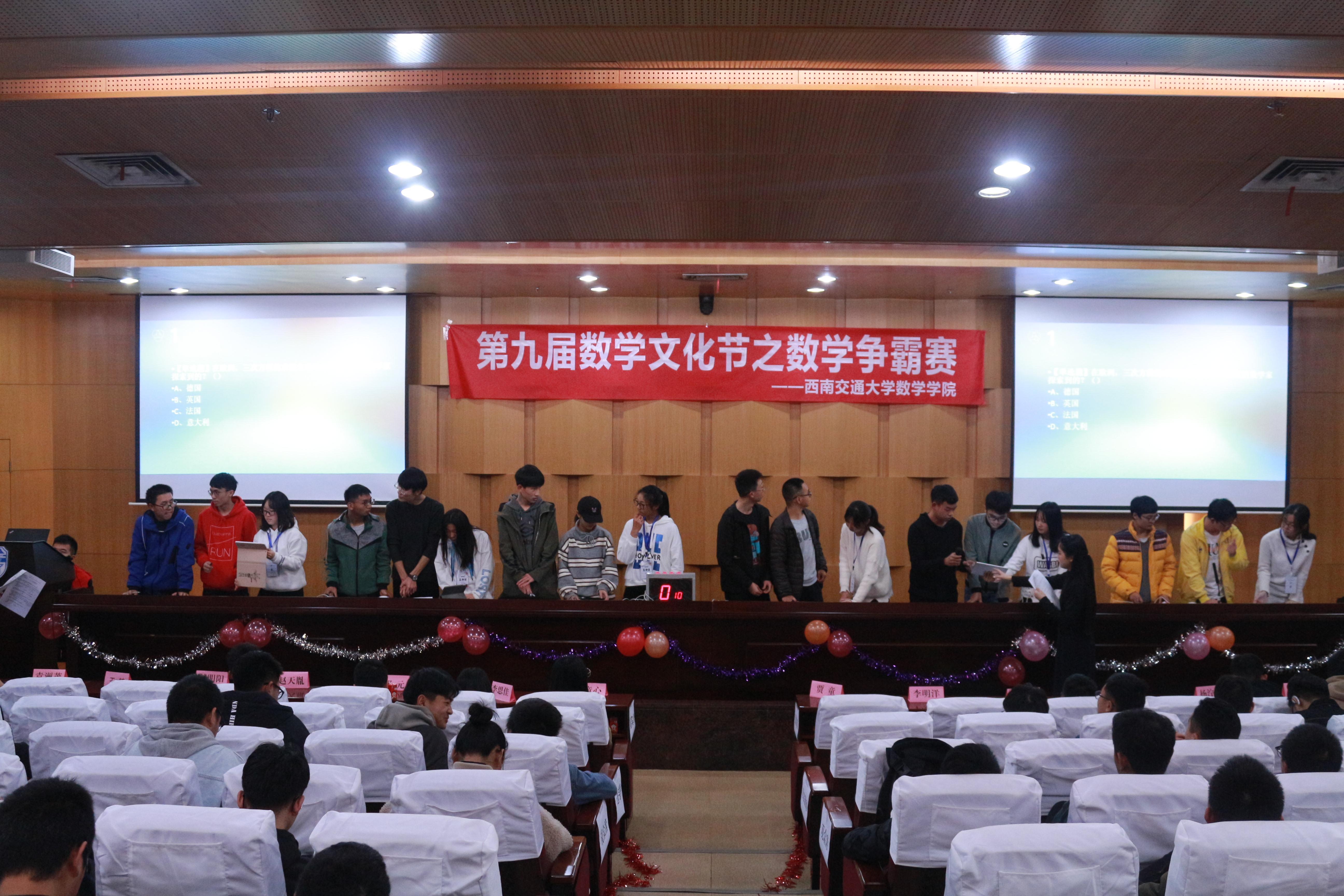 学生会承办,旨在让同学们在活动中体会到数学的乐趣,知数学、懂数学、爱数学,在今后的学习生活中能有饱满的热情与激情对待数学的学习,并将所学的数学知识很好的应用于自己的专业。总览此次活动,活动形式丰富多彩,不单单有参赛人员参与,还增加了观众可以参与的有奖竞猜环节;题目种类多样,包含了应用题,数学史,脑经急转弯等多种与数学相关的趣味性题目。