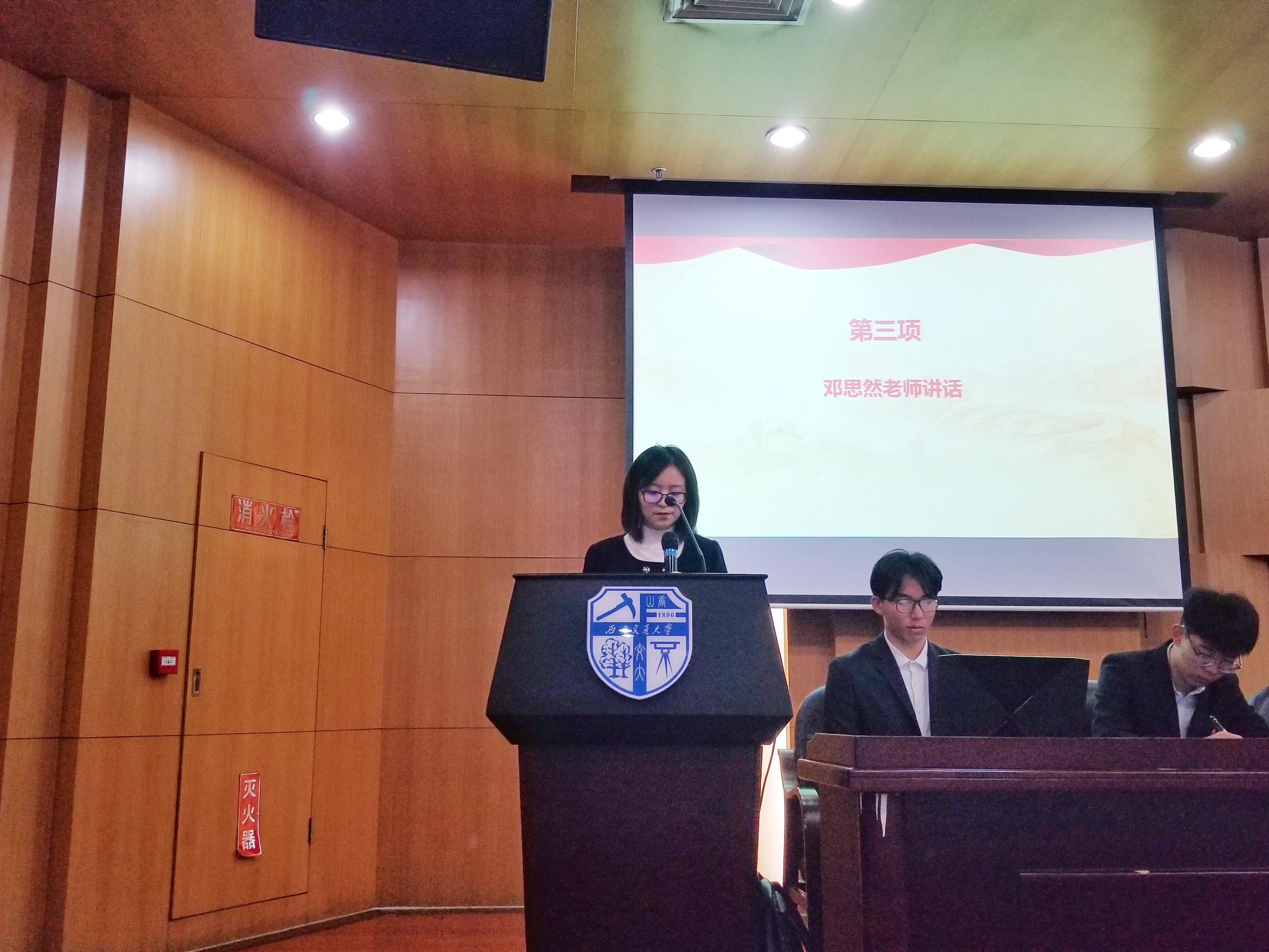 团委书记邓思然老师针对本次大会发表了讲话,上级学生会组织代表、校学生会主席赵天胤也为本次大会致辞。