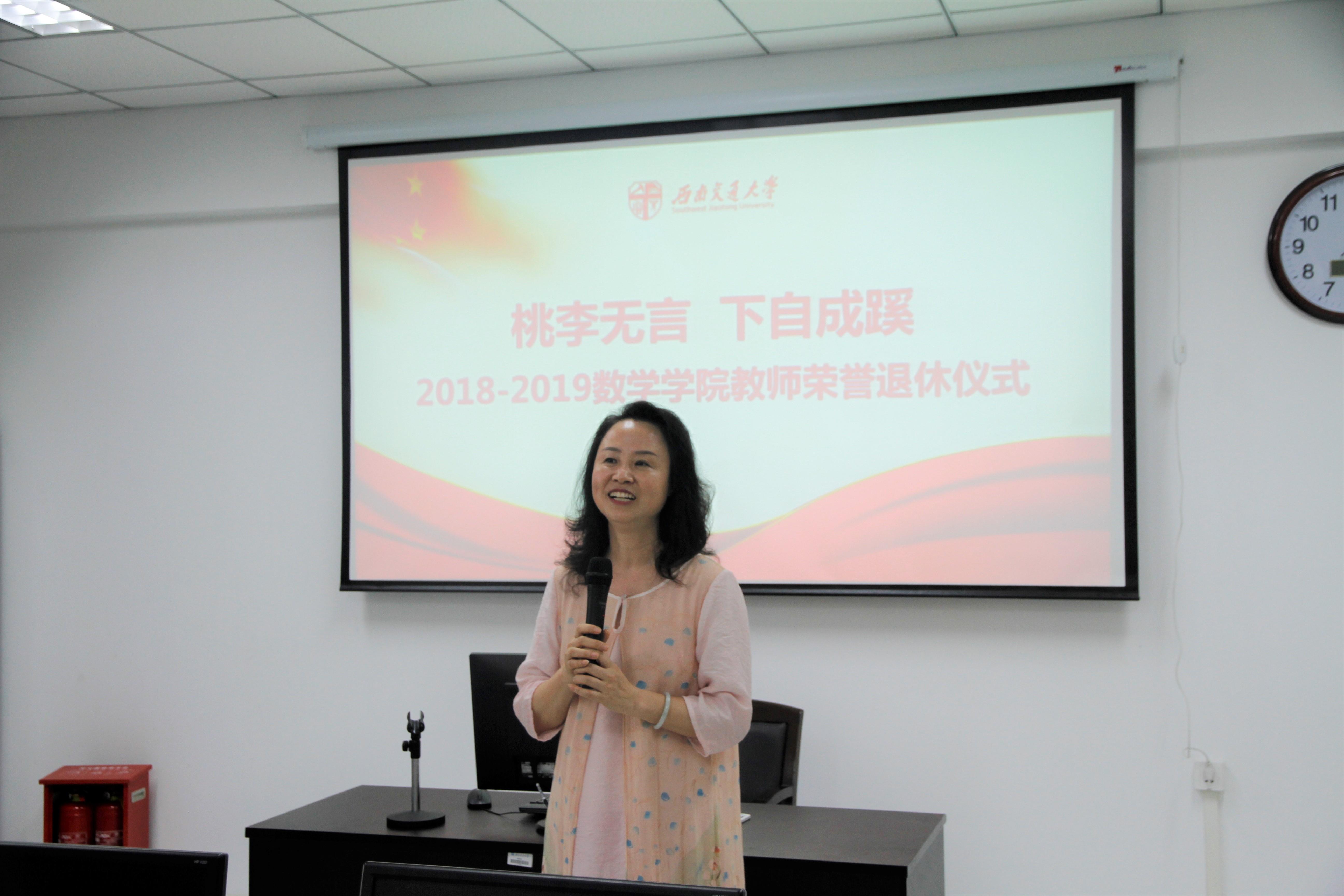 党委书记徐革教授向退休教师们致辞。徐书记代表学院充分地肯定了老教师们多年来在教育事业上所做出的贡献,对几位教师的光荣退休表示了真诚的祝贺。书记在讲话中提到,学院真诚地希望退休老同志在保重身体,颐养天年的同时,继续发挥余热,关心和支持学院工作,为学院各项工作献计献策,做到“退而不休”。此外,徐书记指出学院也将更加重视敬老爱老的工作,努力使退休老师们老有所养、老有所学、老有所为,享受天伦之乐,拥有一个充实幸福的晚年。