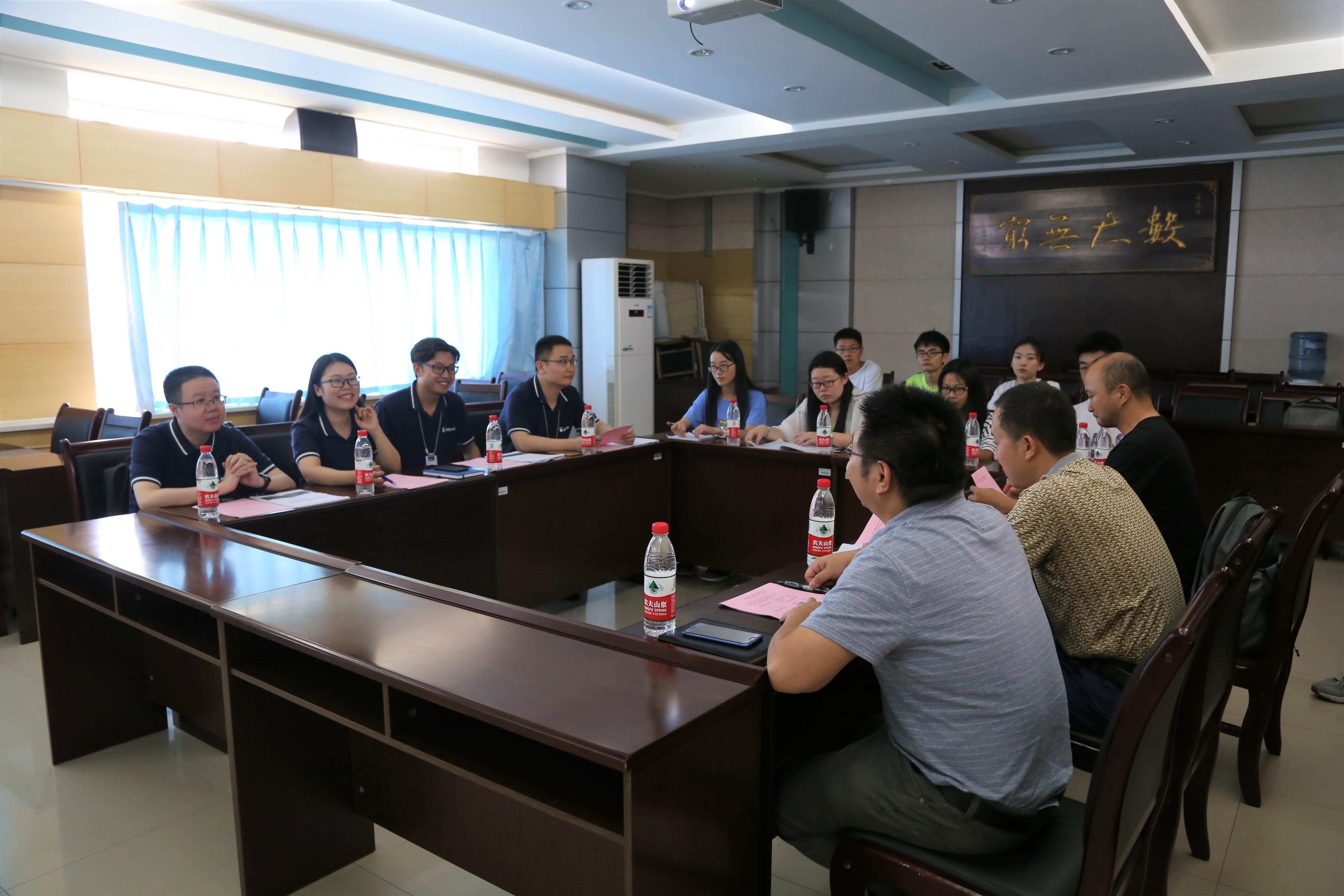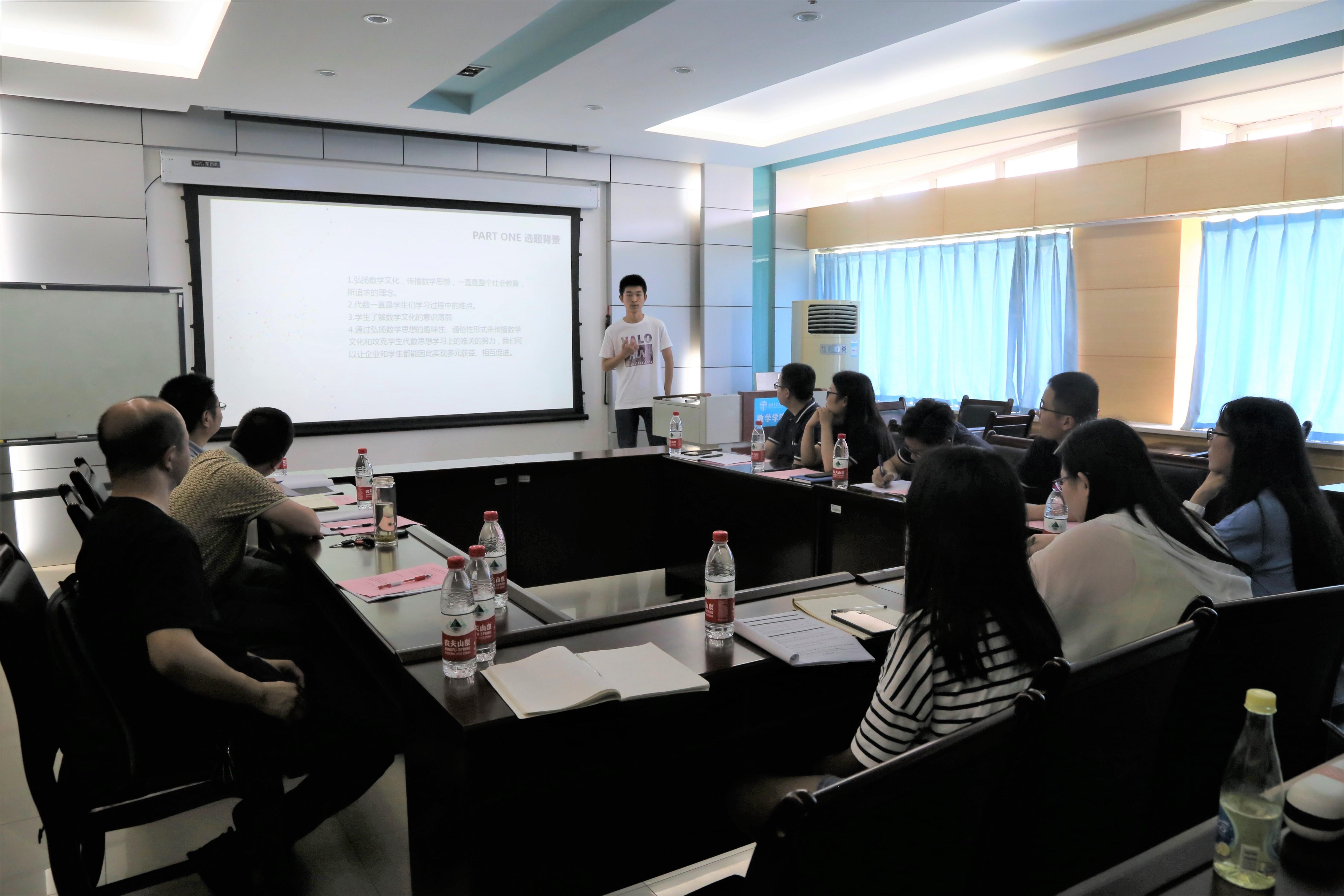 活动伊始,双方与会人员进行了简单的自我介绍。紧接着,两名学生代表分别介绍其代表队伍的项目内容。第一个队伍主题为数学文化与方程思想,该队伍从选题背景,选题意义,项目简介,项目内容等方面阐述数学文化与方程思想的紧密联系。他们将方程思想从小学到高中的应用过程进行了详细规划介绍,并提出了相关扩展。第二个队伍的主题为数学文化与代数思想的应用探究,他们希望能够合理引导学生主动思考代数概念的由来,并且同实际生活联系,将数学真正融入生活。该队伍将代数划分成三个板块,依次介绍了板块中的具体内容,突出了项目特色创新点,方向独特,形式新颖。