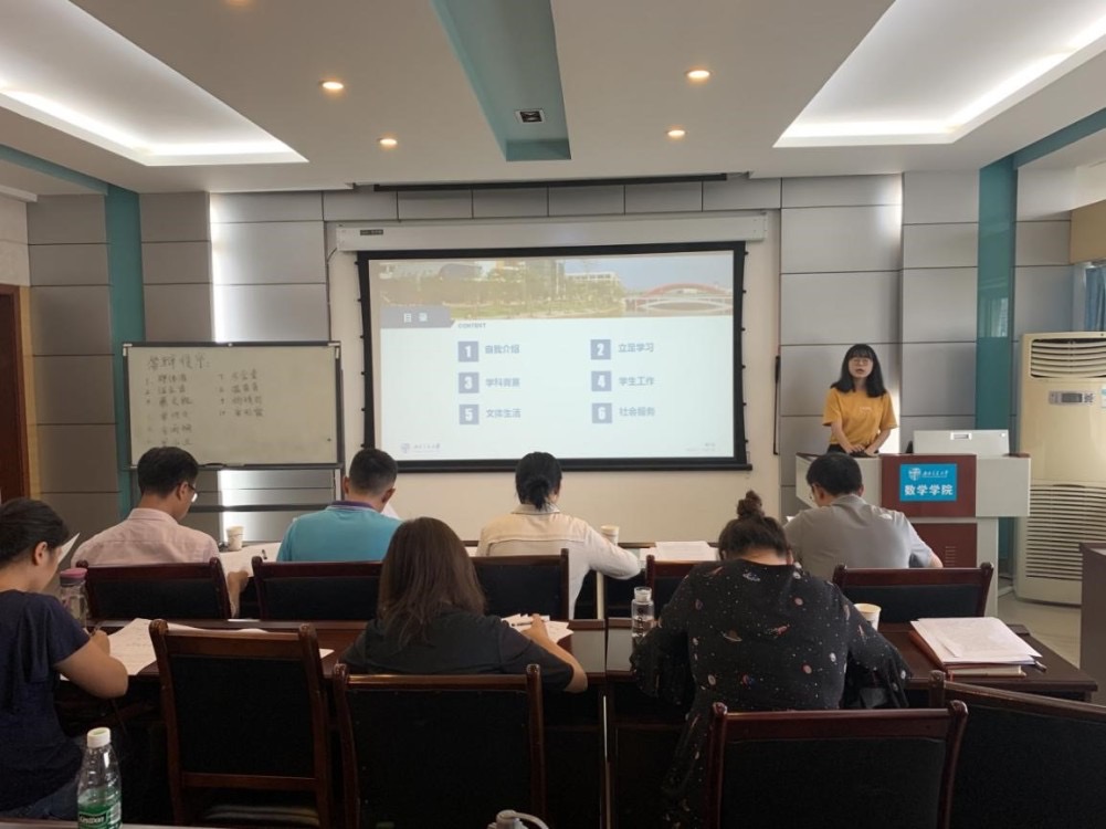 随后,评比正式拉开大幕。首先进行的是国家奖学金答辩,分别由郑伟洁、汪立言、蔡文凯、常怀文、李雨桐、周小兰六位答辩候选人上台演讲。他们从学习情况、科研竞赛、学生工作、社会工作等方面进行了展示,每位同学都具有优秀的综合实力。