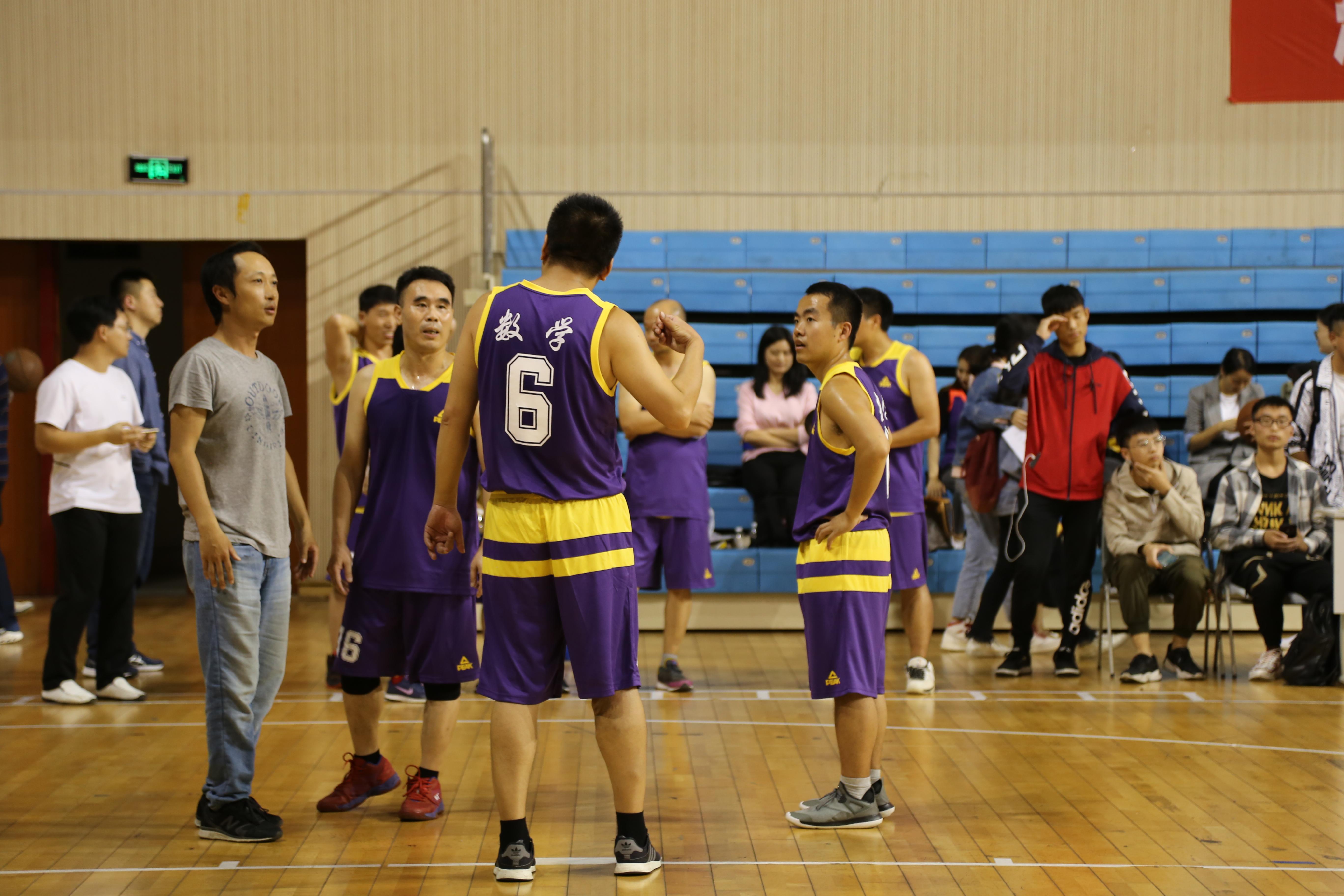 的老师们不断突破篮下得分,把握罚篮机会紧咬比分,一度追分到一分之差。焦灼的比分也吸引许多其他学院的老师前来观战、加油鼓劲。