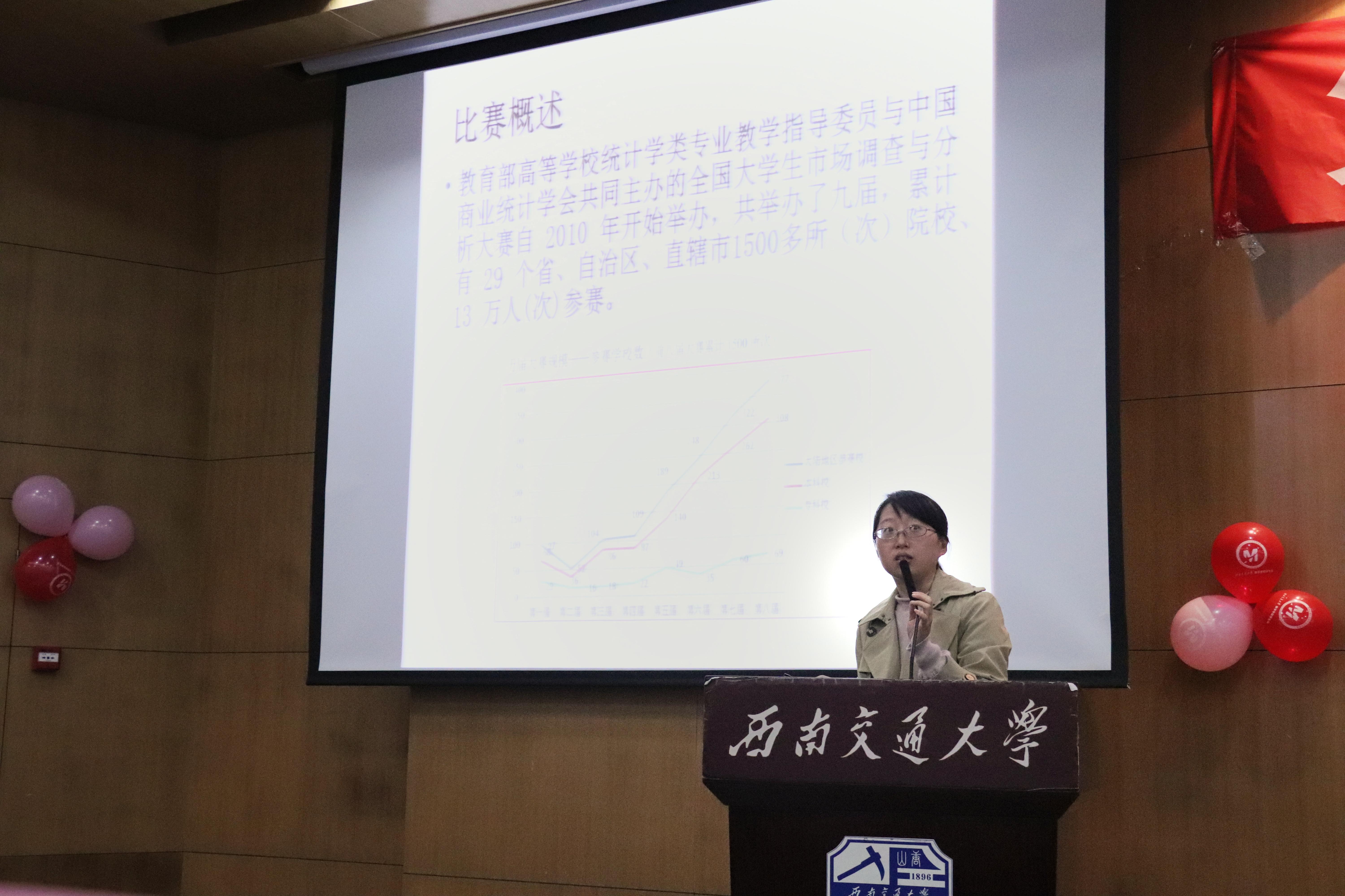 杨颖惠老师为同学们介绍了全国大学生市场调查与分析大赛。杨颖惠老师对市场分析大赛的比赛概述、特点、宗旨、流程以及需储备的知识等方面进行了详细的讲解,并表示十分欢迎各位同学参赛,希望同学们能够通过参加比赛学到知识,提升个人能力,学以致用,勇于实践,敢于创新。