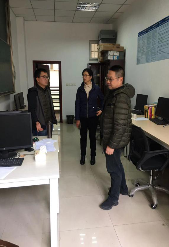 最后徐革书记一行来到位于七教五楼的数学与信息交叉实验室,与实验室团队负责人周正春教授开展了热情、积极的交流。徐书记听取了周教授就其团队近一年以来的工作汇报以及希望学院充分考虑其团队目前发展所面临的场所极度紧缺的困难,徐书记首先充分肯定并赞扬了周教授团队所取得成绩并就周教授所提出的场所紧缺问题给予明确的回复:会在学校相关政策下,结合院情合理优化、适度调整布局实验室的区域以及场地面积,并给学院资产工作管理服务小组强调,要求将前期各项工作统筹做细做实,尽快落实到位,为即将到来的3教顺利搬迁打下坚实的基础。