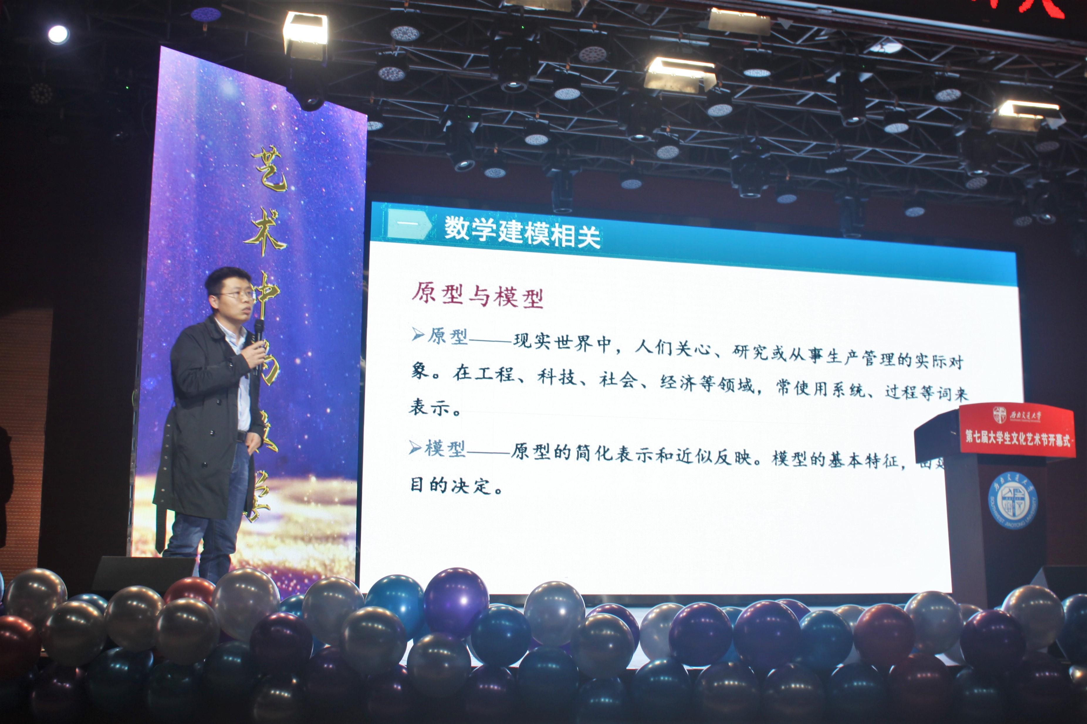 黎定仕老师以“数学的艺术”展开话题,通过对世界名画的几何构图分析、对雪花曲线的鉴赏、对音乐与数学的关系的阐述,点明了数学与艺术相互依存的关系。陈崇双老师则以“浅谈数学模型之美”为主题,对数学建模及相关竞赛进行了简要概述。