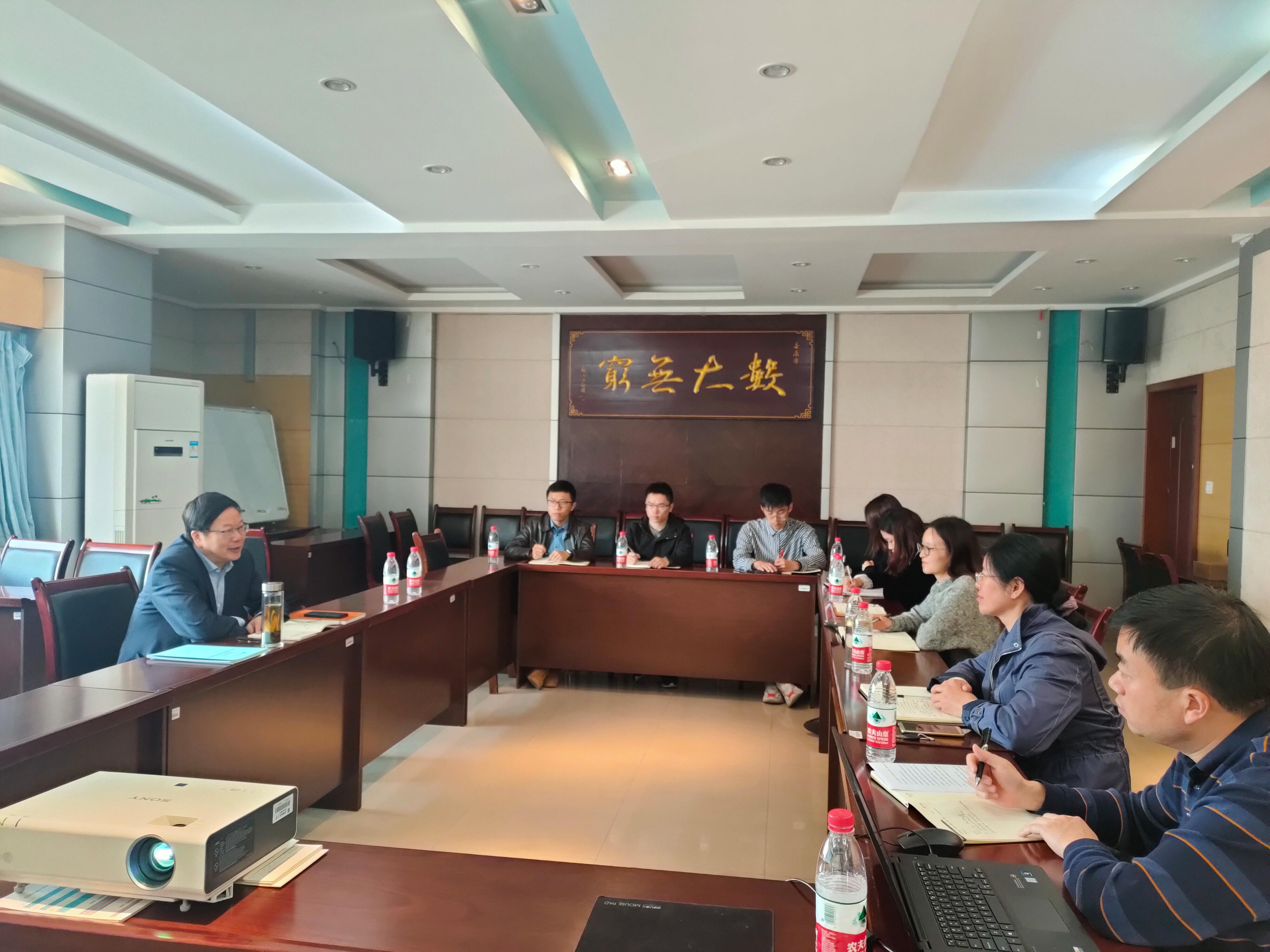 的学生工作、就业工作和辅导员队伍建设等方面与学院老师进行了交流。学院党委副书记黄祥代表学院,分别从学生情况、学工队伍概况、学工体制建设、学生管理、成绩与不足等方面进行了工作汇报。重点介绍了学院学生工作配合“五位一体”学生成长平台,构建数学育人“方程式”。学院以“积分工程”为总体思路,提升党建质量;坚持育心与育德相统一,实施朋辈心理计划;开展“班级综合诊断”特色工作,建立班导师与辅导员协同育人机制,强化学风督导,学院学业危机学生人数逐年下降;打造“数大无穷,以文育人”的文化浸润核心,品牌活动数学文化节覆盖面广参与人数多。在深造就业方面,学院落实“一生一策”制度,开展就业工作“三步走”计划,为学生深造就业提供全力帮扶。