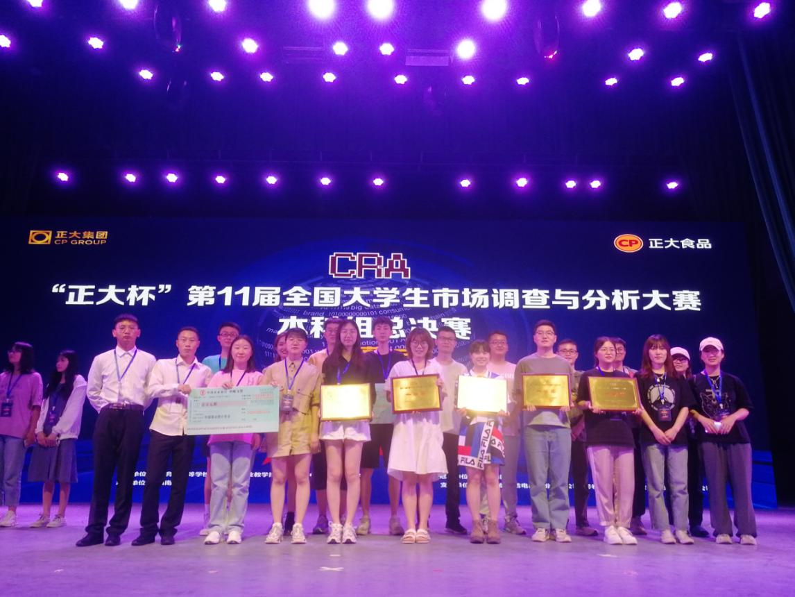 荣获“最佳院校组织奖”,“熬夜不秃头”团队作品荣获正大企业赛道全国第1名并获一万元企业奖金。“观官媒莓小队”作品获得本次总决赛全国第三名,并将代表中国大陆地区参加今年8月下旬举行的2021年海峡两岸暨港澳大学生市调大赛总决赛。