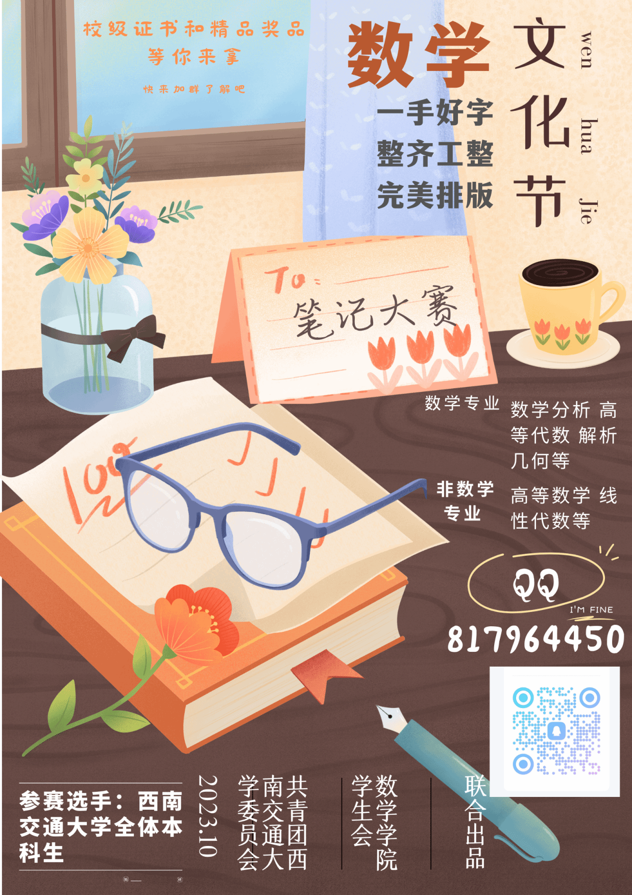 为进一步加强学风建设,发挥优秀数学笔记的模范带头作用,加强同学之间的学习交流,树立良好的学习之风,宣传优秀学习榜样,夯实学科基础,形成学数学、懂数学、爱数学的良好氛围。传承“严谨治学,严谨要求”的交大传统,增强同学们数理强国的信念,特举办91暗网