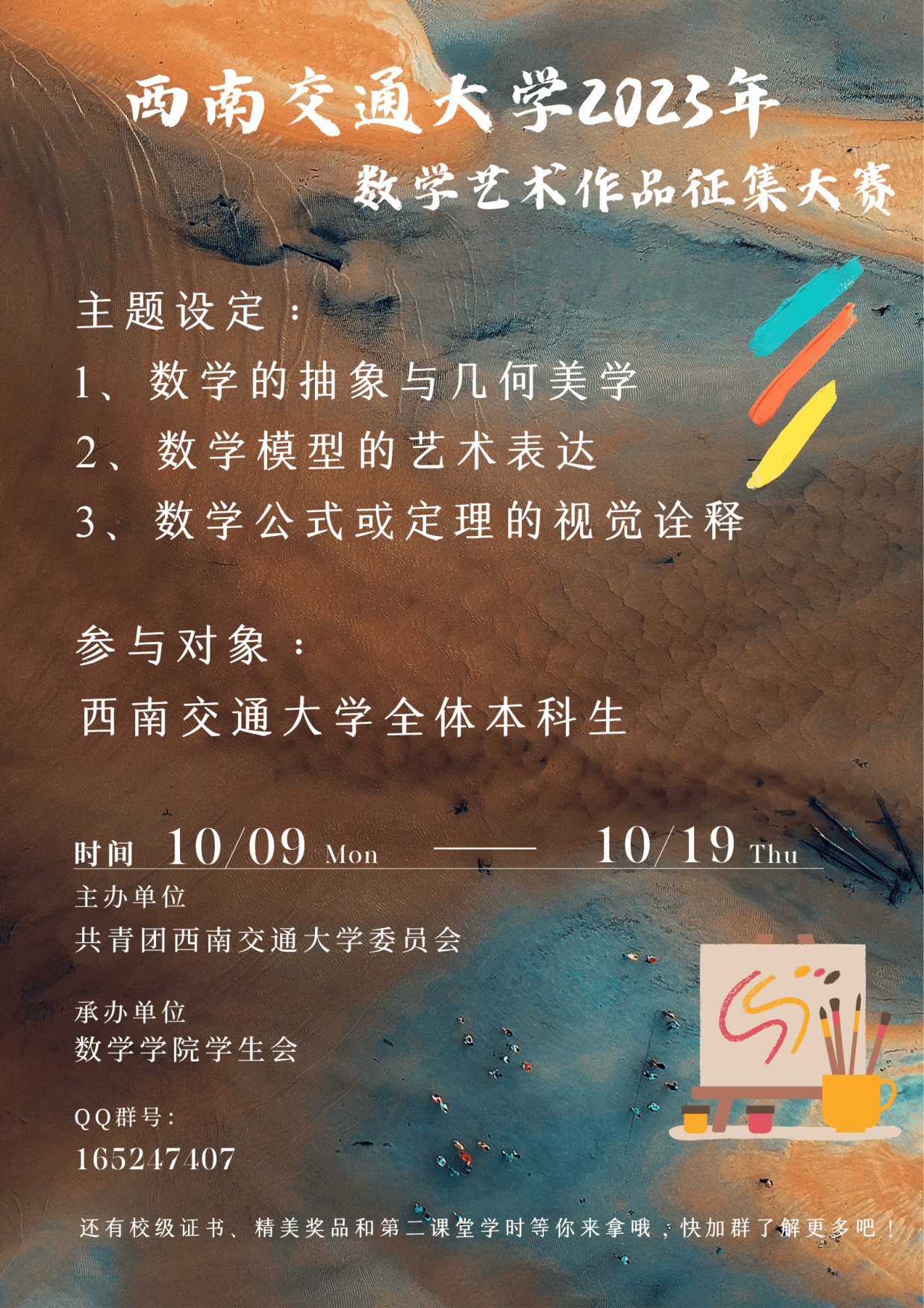 在当今数字化时代,数学已成为科学发展和现代社会不可或缺的基石。为了鼓励更多人了解和热爱数学,同时展现数学之美的艺术魅力,激发参赛者对数学的兴趣和热爱,培养他们的创造力和艺术才能探索数学与艺术的结合,展示数学的美学价值,特举办91暗网